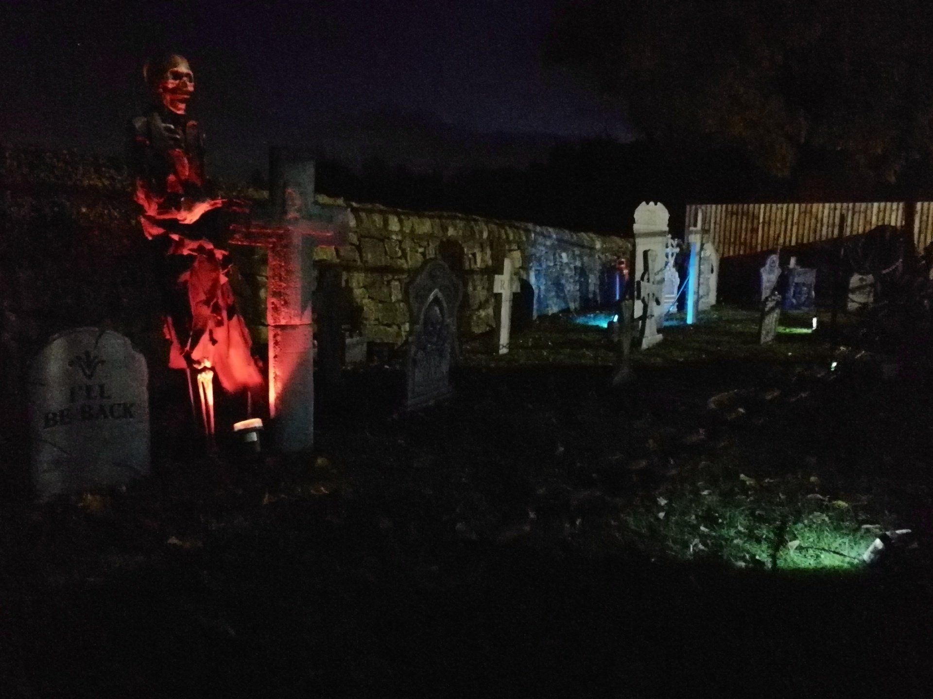 An old haunted graveyard needs sound and lighting to create the creeping atmophere.